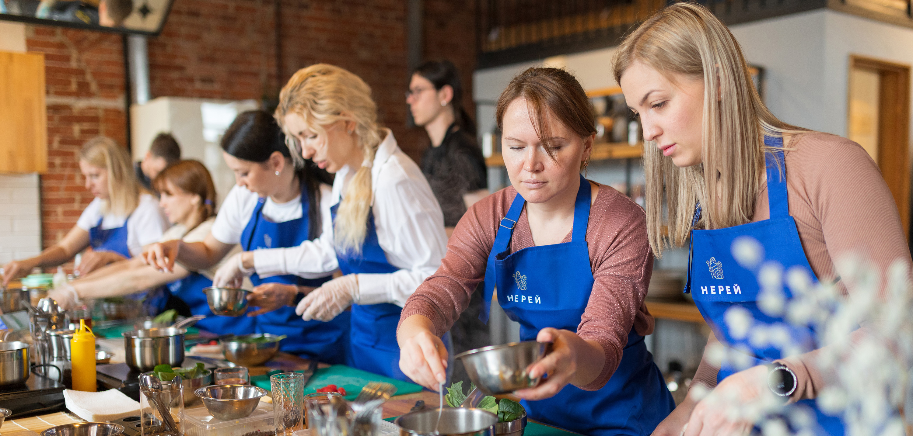 Во-вторых, проведение мастер-классов у ведущих поваров, кулинарных конкурсов внутри коллектива — это тоже своего рода учеба. Мы лучше узнаем продукт, как он себя ведет при обработке, с чем сочетается и многое другое. Какими-то секретами можем даже поделиться с клиентами, предложить при необходимости альтернативу товару. И, в-третьих, это интересное времяпрепровождение вне офиса и сплочение коллектива. Совмещаем приятное с полезным — учебу и отдых.