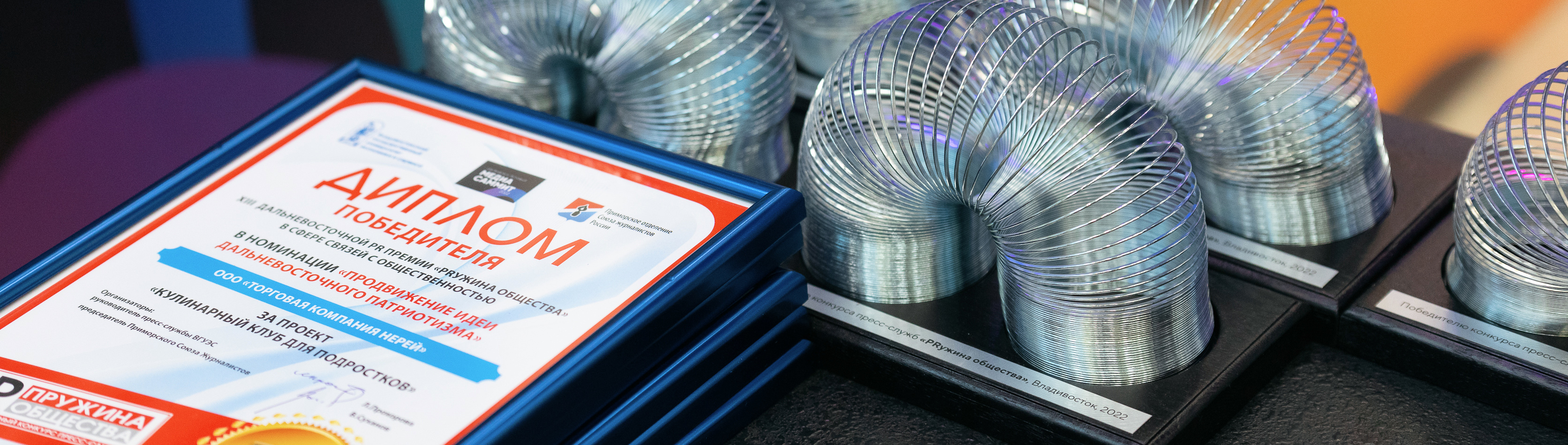 Компания «Нерей» награждена дипломом победителя XIII Дальневосточной PR-премии «PRужина общества» в сфере связей с общественностью за проект «Кулинарный клуб для подростков». Торжественное награждение лауреатов конкурса состоялось 10 июня на церемонии закрытия форума «МедиаСаммит-2022».