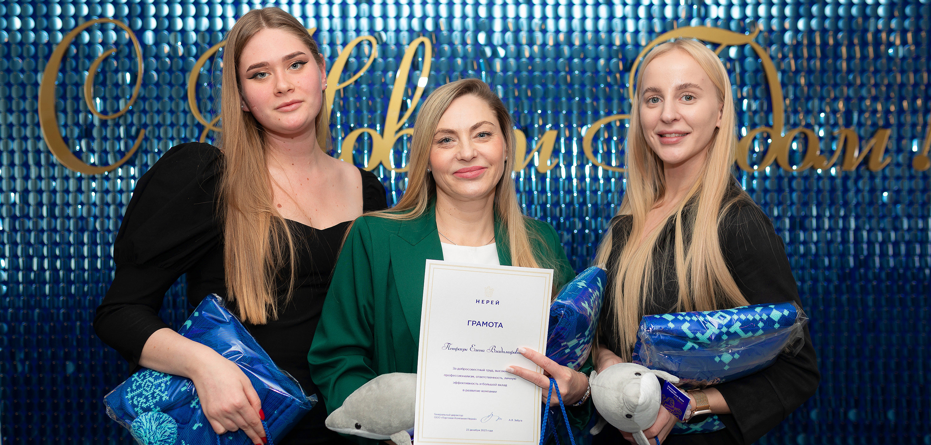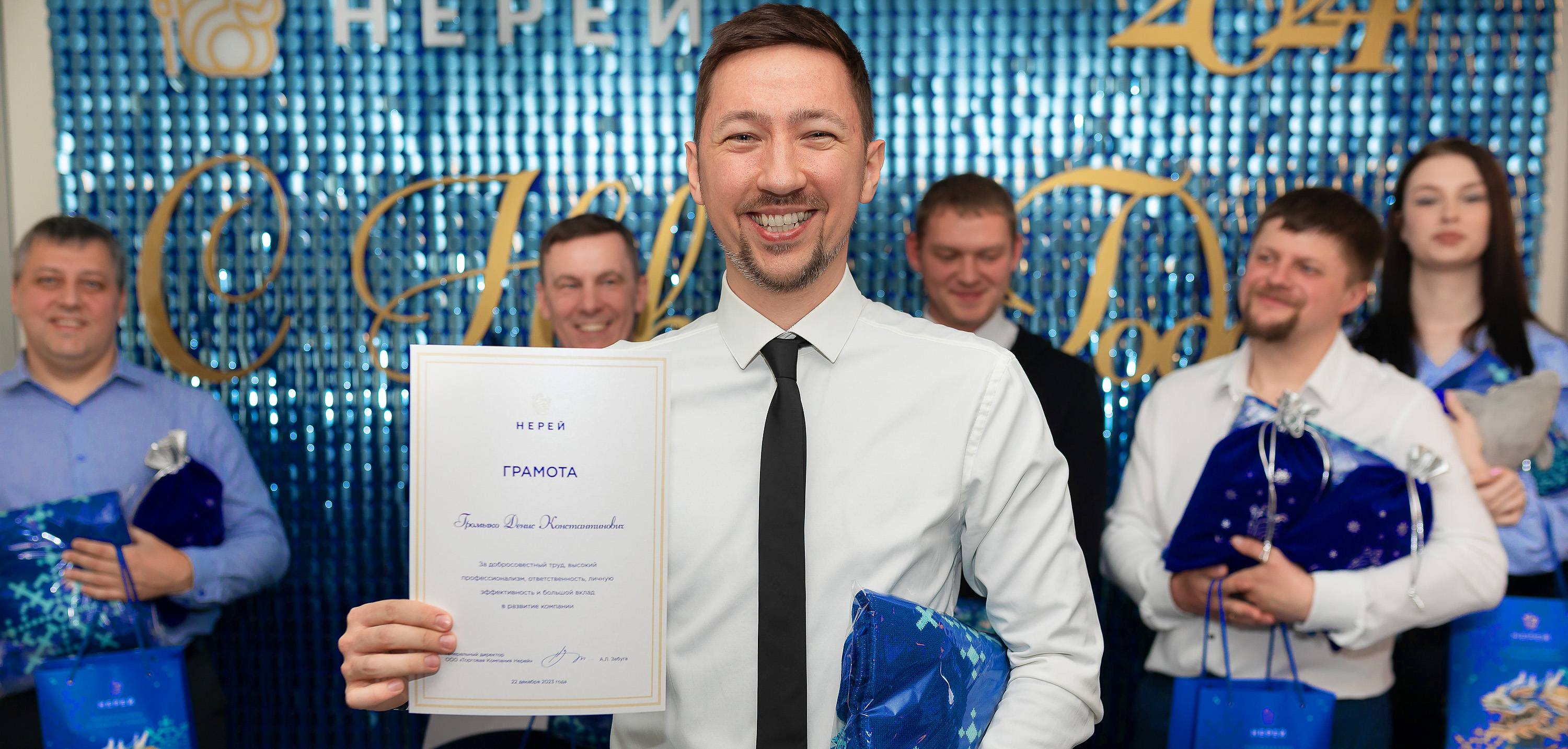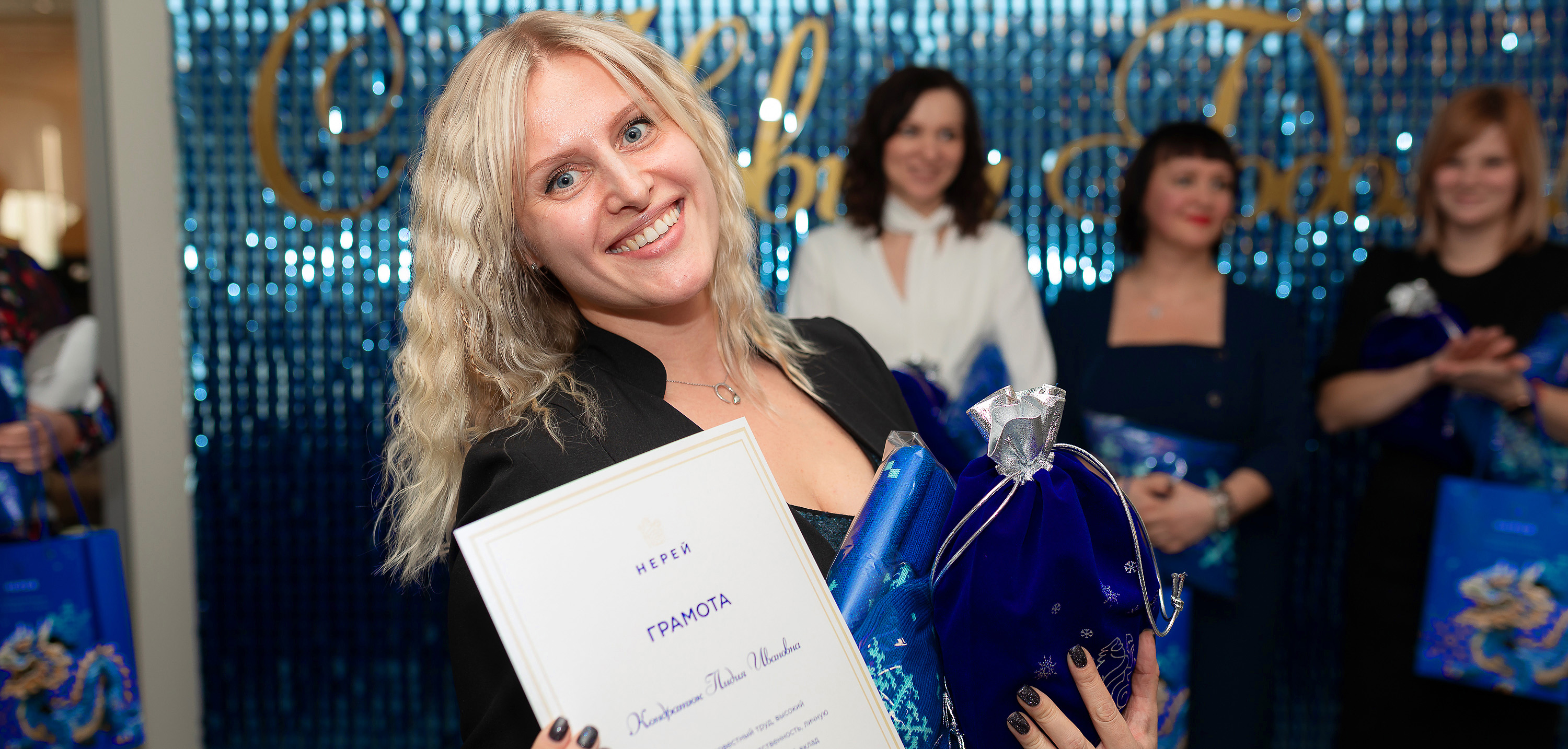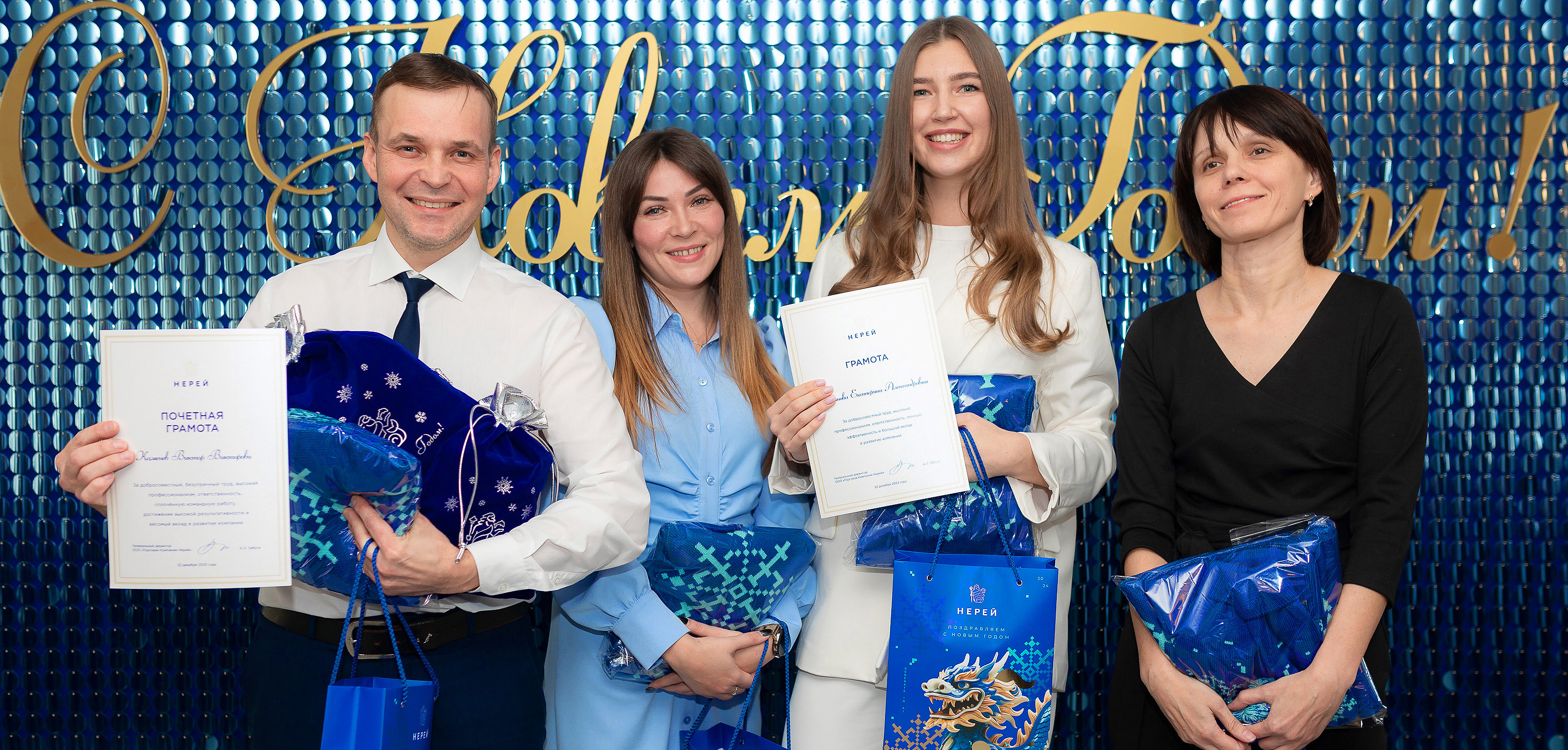 В рамках ежегодного подведения итогов состоялось праздничное поздравление коллектива компании «Нерей» корпоративными подарками к Новому году. За выдающиеся достижения в работе и высокий профессионализм особо отличившиеся сотрудники отмечены грамотами и ценными наградами, а за значительный вклад в развитие компании присуждена главная премия – «Сотрудник года».