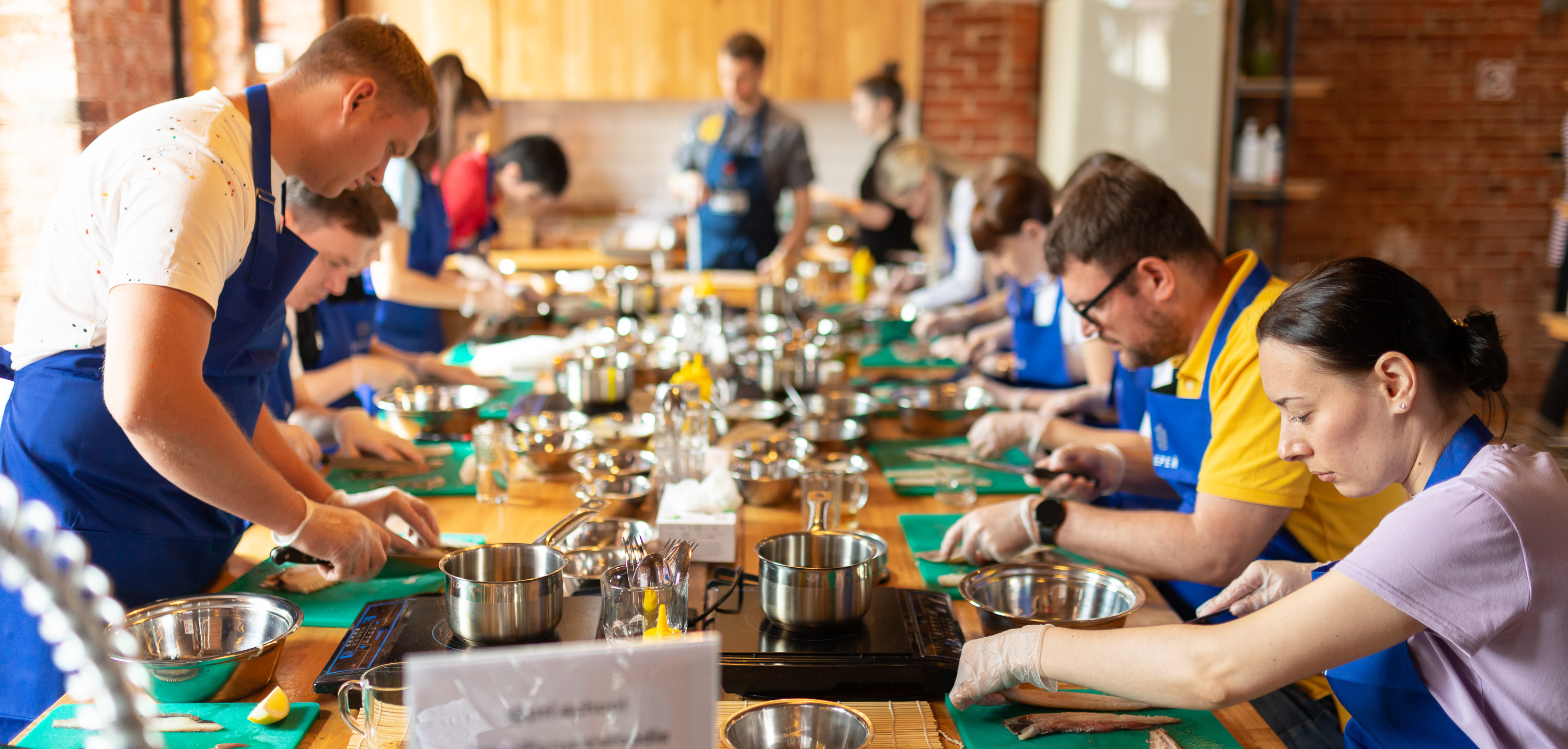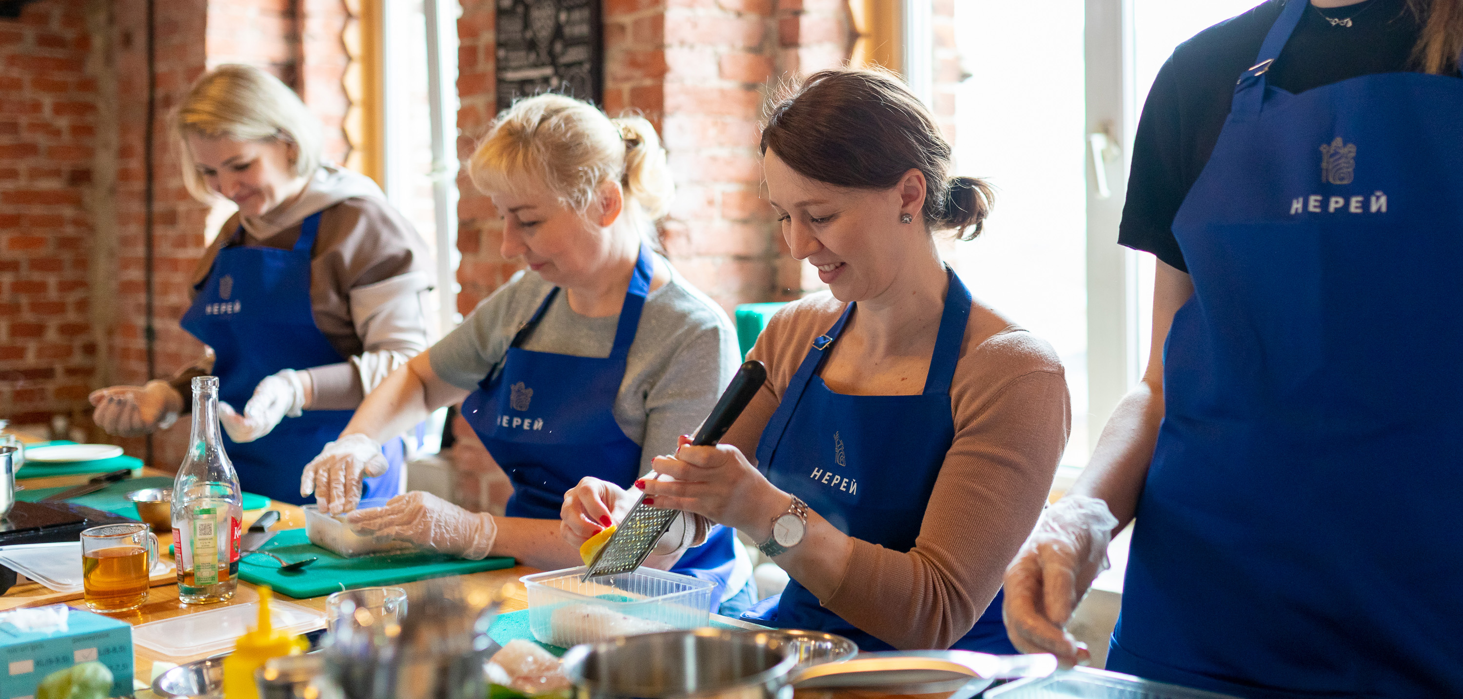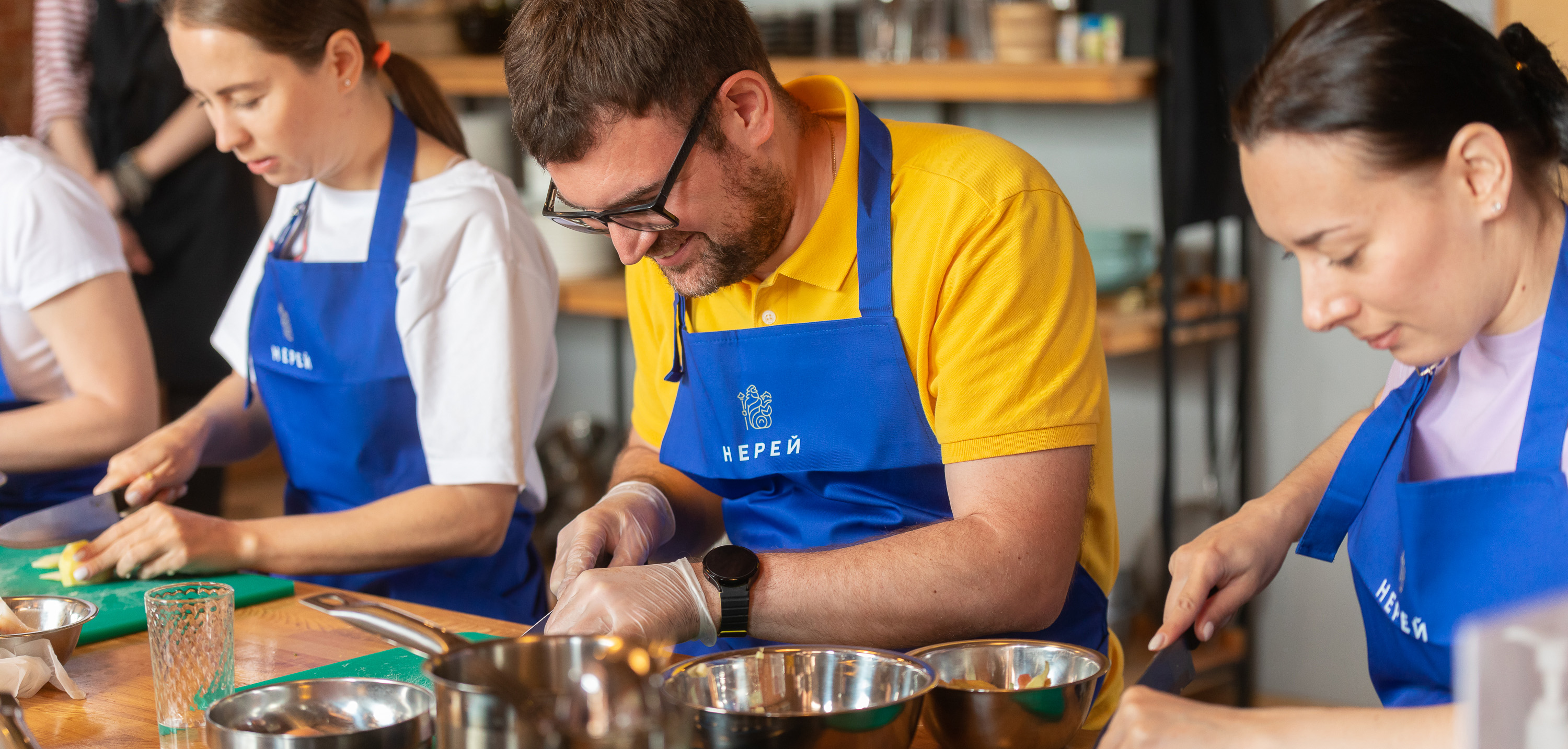 Со Школой дальневосточной кухни компанию «Нерей» связывает уже добрая история совместно реализованных проектов.   Вместе мы организовывали праздник для детей из социальных учреждений, целый год бесплатно учили подростков готовить блюда их дальневосточной рыбы, поощряли участием в мастер-классах победителей своего корпоративного кулинарного конкурса оригинальных рецептов, а в этом году уже весь коллектив получил уникальную возможность посетить интересные уроки по готовке.