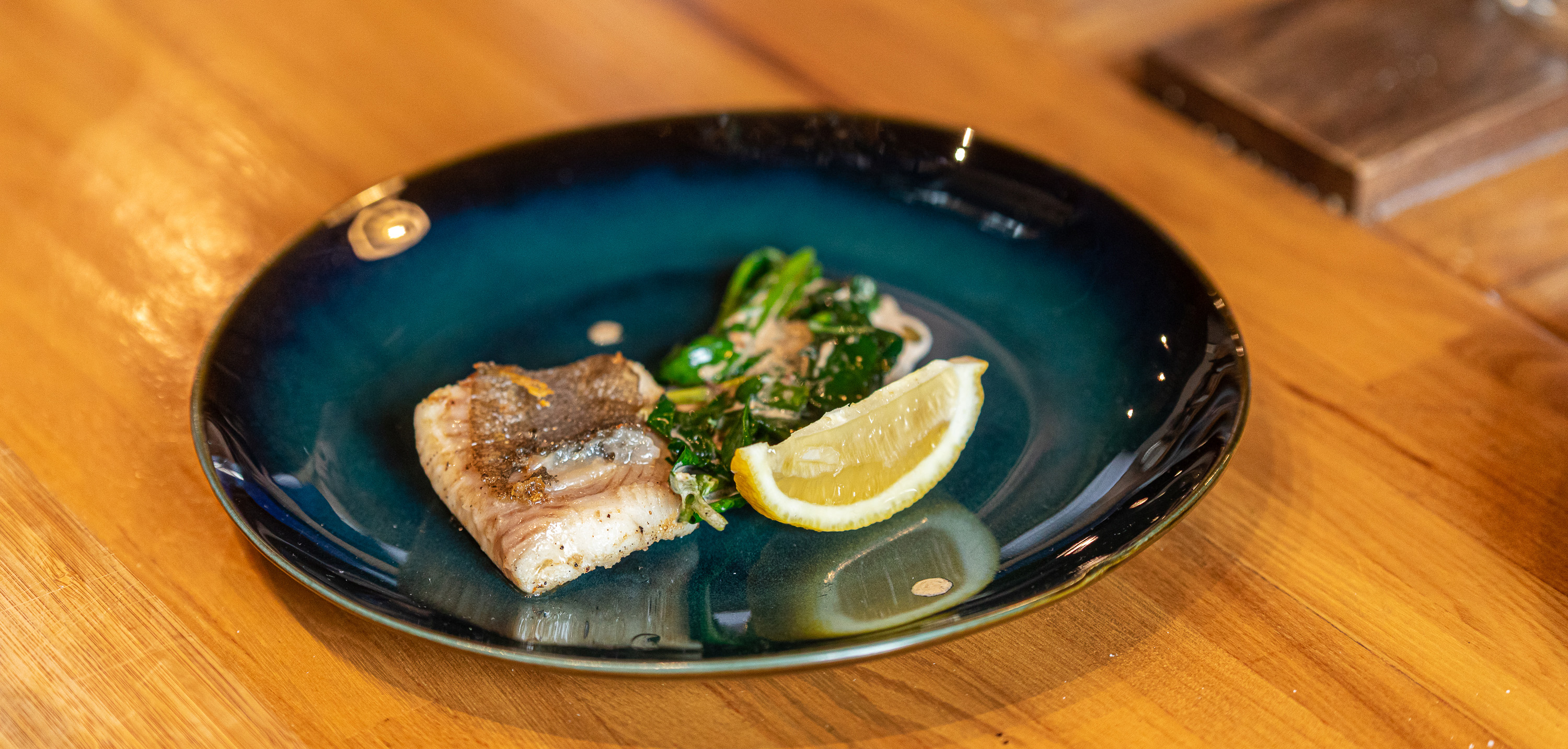 В каждый рецепт шеф-повар привнес особую пикантность и оригинальные вкусовые нотки. Так, в классическую уху добавили нежные сливки, стейк белоснежного палтуса подавался на подушке из ярко-зелёного шпината, а в засолке филе неожиданными ингредиентами оказались коньяк, цедра апельсина и розовый перец