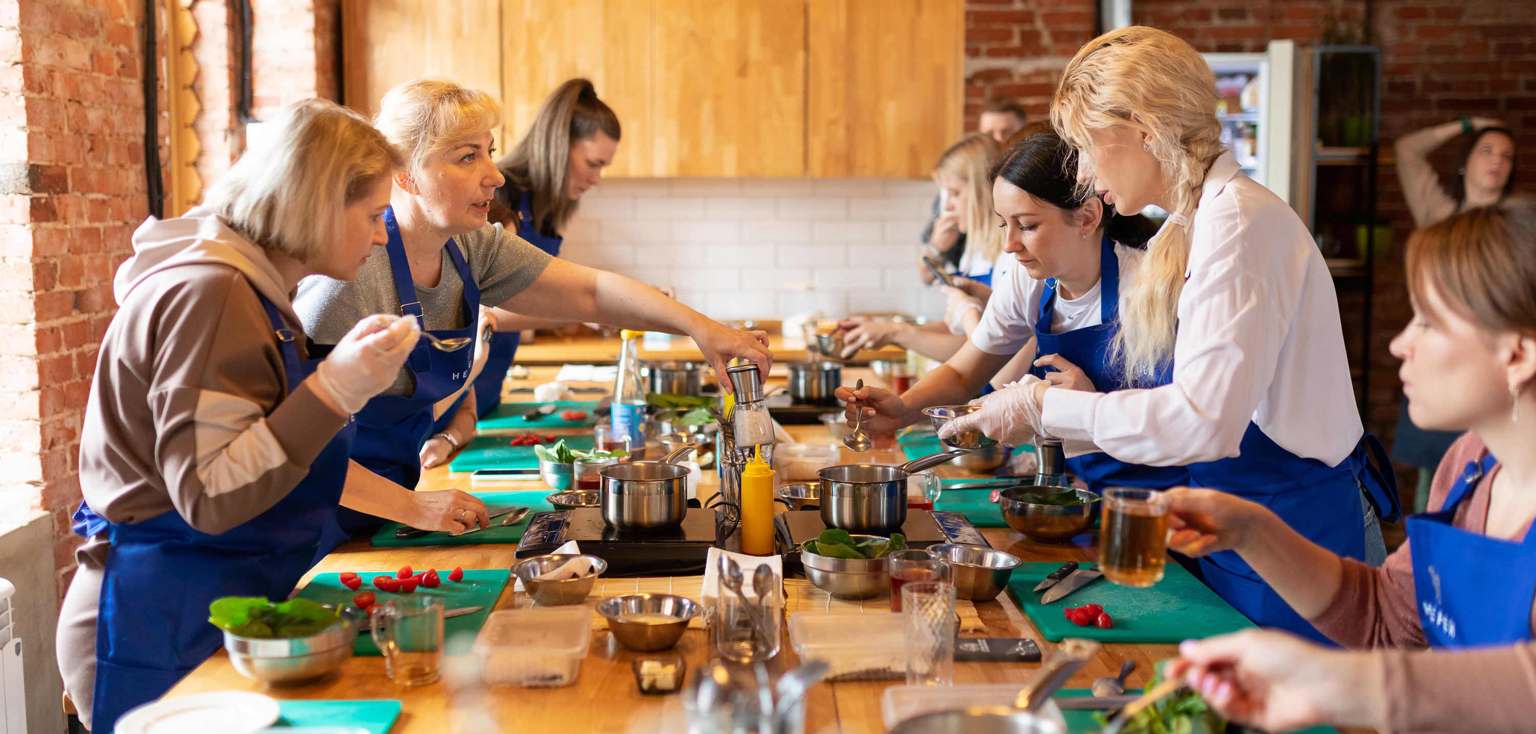 Самое приятное, что мастер-классы не заканчиваются на приготовлении блюд. Они завершаются общим застольем и дегустацией. Долгожданный и волнительный момент – оценить на вкус собственноручно приготовленные блюда! Ведь в свой кулинарный шедевр участники вложили не только время и усилия, но и частичку своей души. Восторженные отзывы и довольные лица - лучший показатель отличного мероприятия.