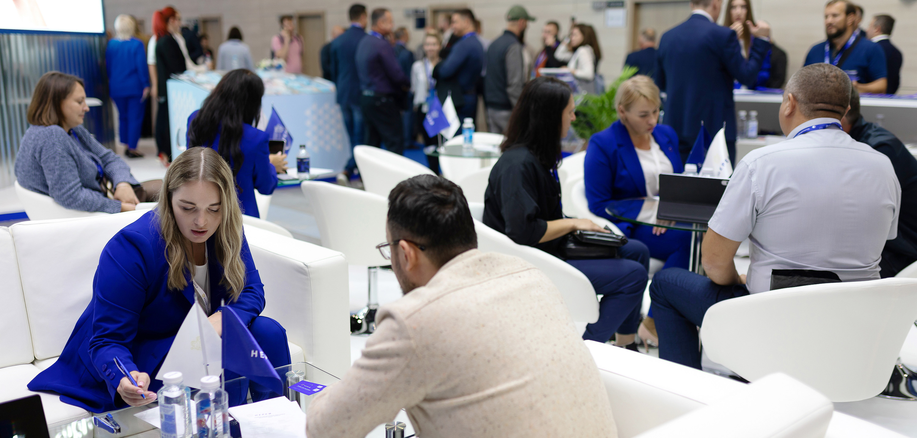 Корпоративный стиль выдержан во всем – в раздаточном материале, фирменных подарках клиентам, внешнем виде сотрудников. Специально для выставки по эксклюзивному дизайну были пошиты деловые костюмы для прекрасной половины коллектива. Нереевские девушки получили самые щедрые комплименты и искреннее восхищение.