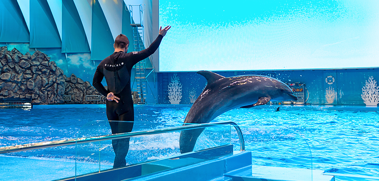 Спустя 40 минут пути, мы прибыли в Океанариум и отправились смотреть “Шоу дельфинов”.